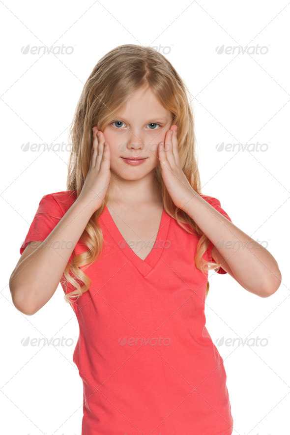 adorable, alone, beautiful, blonde, caucasian, cheerful, child, childhood, close-up, closeup, concentration, cut out, cute, emotion, enjoyment, european, fashion, focused, front, girl, hair, indoor, isolated, joy, kid, lovely, nordic, one, pensive, people, person, pleasure, portrait, positive, positivity, pretty, red, scandinavian, single, smile, stand, studio, think, thought, white, young