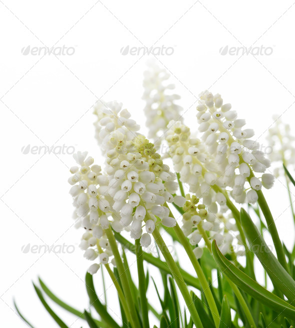 blooming, blossom, closeup, flora, flowers, grape hyacinth, hyacinth, leaf, macro, muscari, nature, petal, plant, small, spring, white background, wild flower