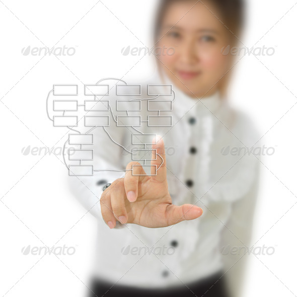 asian, background, business, chinese, concept, female, isolated, japanese, point, pointing, thai, white, woman, young