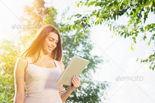 adult, attractive, back lit, back-light, beautiful, caucasian, communication, computer, cup, digital, drink, female, girl, green, happiness, happy, internet, laughing, lifestyle, modern, nature, online, outdoor, outdoors, park, pc, people, portrait, reading, relax, relaxation, smiling, spring, student, summer, sunny day, tablet, technology, tourism, travel, trees, using, wifi, wireless, woman, women, young