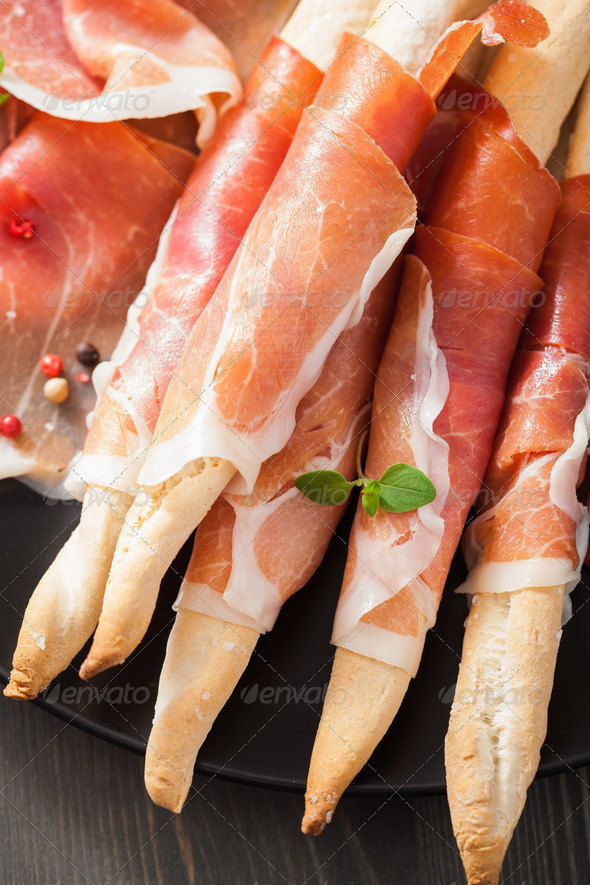 antipasti, antipasto, bacon, bread, closeup, crispy, cuisine, food, fresh, gourmet, green, Grissini, ham, italian, meat, mediterranean, oregano, parma, pepper, plate, pork, Prosciutto, red, rustic, serrano, slice, smoked, snack, stick, traditional, wood, wooden
