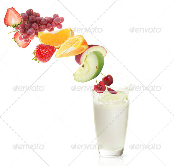 various type of fruit slices stacked with splash (Misc) Photo Download