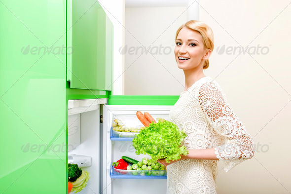 alone, attractive, beautiful, beauty, blond, broccoli, carrot, caucasian, cheerful, cook, cookery, cooking, diet, dieting, dinner, domestic, female, food, fresh, fridge, girl, happy, health, healthy, home, housewife, indoors, ingredients, interior, kitchen, lettuce, lovely, lunch, modern, nutrition, paprika, preparing, refrigerator, salad, smiling, vegetable, vegetarian, woman, young