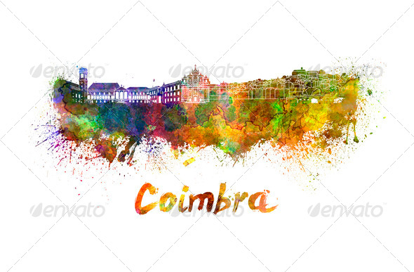 abstract, architecture, art, background, bright, cityscape, clipping path, coimbra, Coimbra skyline, color, colorful, creativity, europe, grunge, illustration, landmark, monuments, panoramic, portugal, skyline, splash, splatter, texture, watercolor