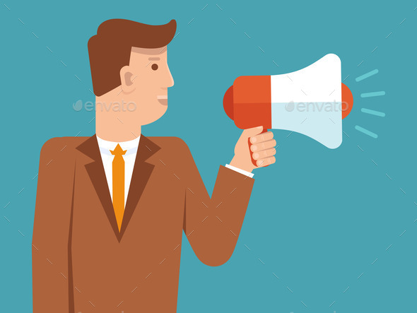 advertising, announce, announcement, businessman, character, communicate, concept, executive, flat, guy, holding, icon, illustration, information, job, leader, loud, loudspeaker, male, man, marketing, megaphone, message, orator, profile, promote, promotion, public, scream, shouting, sound, speaker, standing, success, suit, voice, warning, work