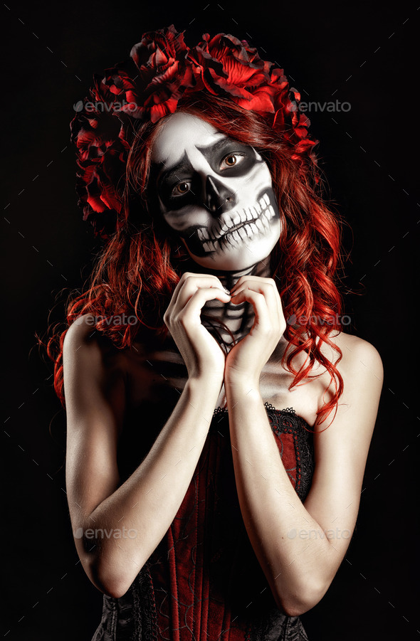 alone, beautiful, beauty, black, bone, calavera, dark, dead, death, emotion, expression, face, female, flower, gesture, girl, goth, gothic, grim, halloween, heart, hex, horror, lonely, love, makeup, mexican, muerto, muertos, mysterious, paint, portrait, red, rose, sad, scary, sign, skull, sorrow, spooky, sugar, terror, voodoo, white, witch, woman, young, zombie
