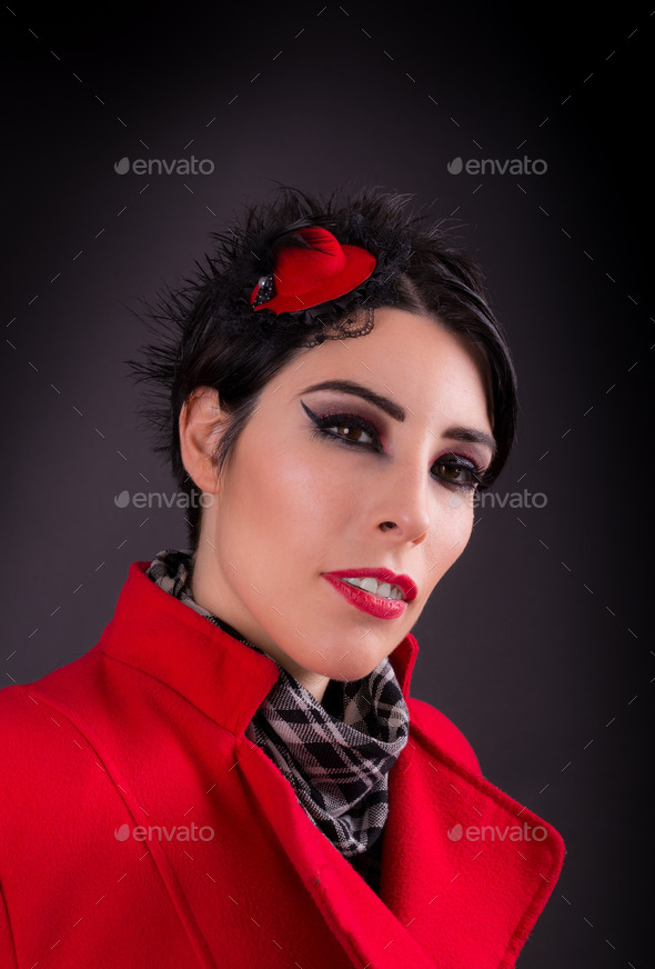 black, chick, closeup, clothes, corset, dark, dress, girl, goth, hat, heavy metal, lace, lipstick, makeup, portrait, red, rock, scarf, wedding, woman