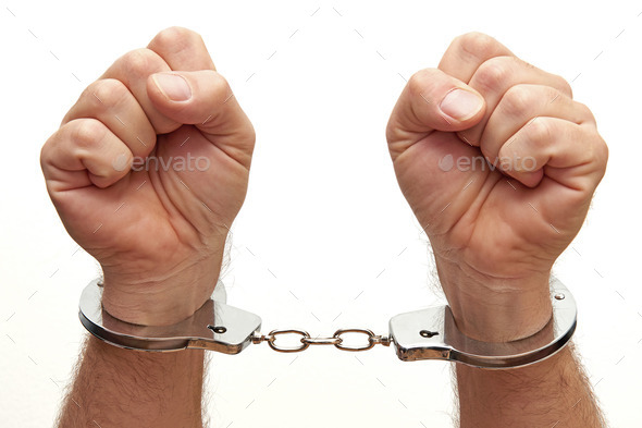 criminal, devices, escape, fist, handcuffed, handcuffs, hands, metal, police custody, restrained, secure, suspect, wrists