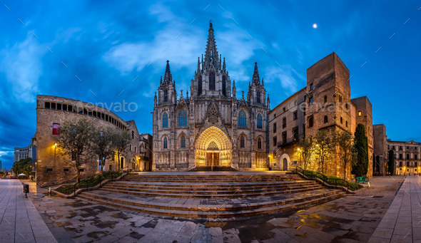 ancient, arch, architecture, Barcelona, barri, basilica, blue, building, Catalan, Catalonia, catalunya, cathedral, catholic, chapel, church, city, cityscape, cross, dawn, electric, eulalia, europe, european, facade, gothic, gotic, history, holy, iconic, illuminated, landmark, lights, medieval, monument, morning, neogothic, night, old, religion, saint, sky, skyline, spain, spanish, stone, town, travel, twilight, urban, view
