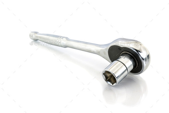 background, chrome, closeup, combination, equipment, hand, handle, handy, industrial, industry, isolated, metal, metallic, object, ratchet, repair, shiny, silver, socket, spanner, steel, studio, tool, white, work, wrench