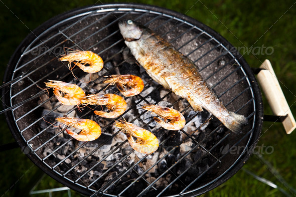 barbecue, barbecuing, barbequing, bbq, black, burn, charcoal, closeup, cook, cooking, cookout, diet, dining, dinner, eat, fire, fish, flame, food, fresh, garden, good, gourmet, green, grid, grill, grilled, grilling, heat, hot, meal, meat barbeque, nobody, outdoor, outside, party, pepper, protein, roast, seafood, shrimp, smoke, summer, weather