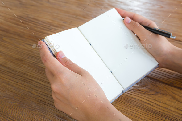 binder, blank, book, clean, closeup, diary, document, education, empty, girl, hand, letter, macro, meeting, message, nobody, note, notebook, object, office, open, outline, page, paper, pen, pencil, studying, table, white, wood, write