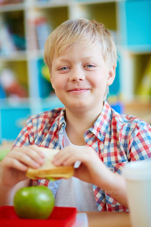 appetite, boy, caucasian, children, cute, education, elementary, food, handsome, happy, hungry, junior, Learner, lunch, one, people, person, primary, pupil, sandwich, schoolboy, schoolchild, smiling, snack, youngster