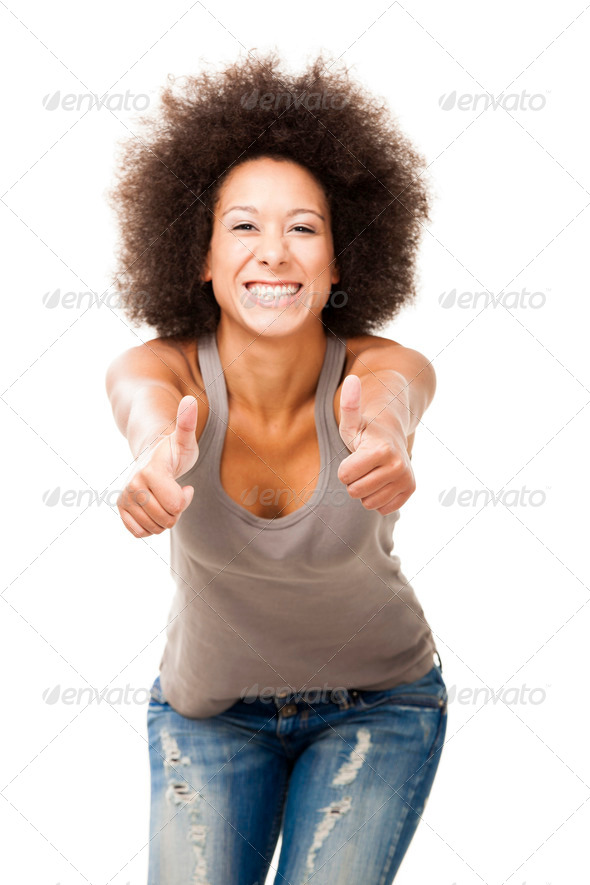 adult, african, afroamerican, american, attractive, background, beautiful, beauty, black, brunette, casual, cheerful, confident, curly, cute, emotion, ethnic, expression, expressive, friendly, fun, gesture, girl, gorgeous, happiness, happy, isolated, looking, natural, ok, okay, one, optimistic, people, portrait, pretty, satisfied, smile, smiling, studio, success, thumbs up, white, woman, young