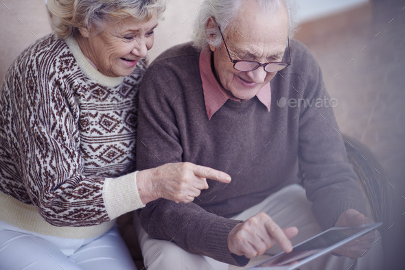 age, aged, caucasian, couple, digital, elderly, family, grandparents, happy, husband, man, mobility, networking, pensioner, people, person, pointing, retired, senior, tablet, technology, together, wi-fi, wife, woman