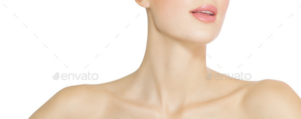 anonymous, anti-age, banner, beautiful, beauty, bright, caucasian, cosmetology, cropped, dermatology, face, fashion, Fashion Model, fresh, glowing, head, healthy, lips, makeup, model, mouth, perfect, perfection, posing, rejuvenation, shoulders, skin, smooth, studio, white, woman, young, youth