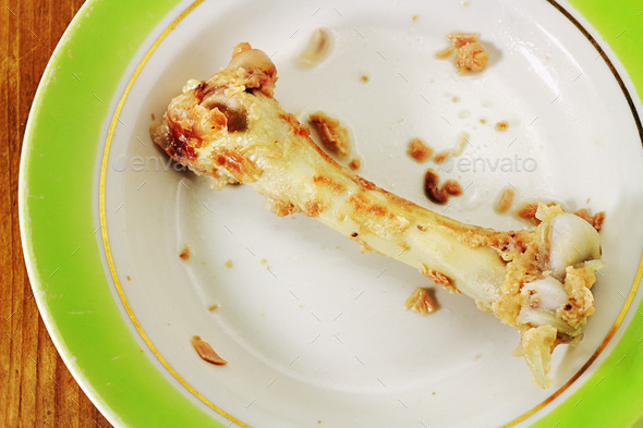 bird, bone, close-up, consume, eat, empty, femur, food, gnaw, gnawed, hearty meal, leftovers, leg, meal, meat, picking, plate, poultry, scraps, turkey
