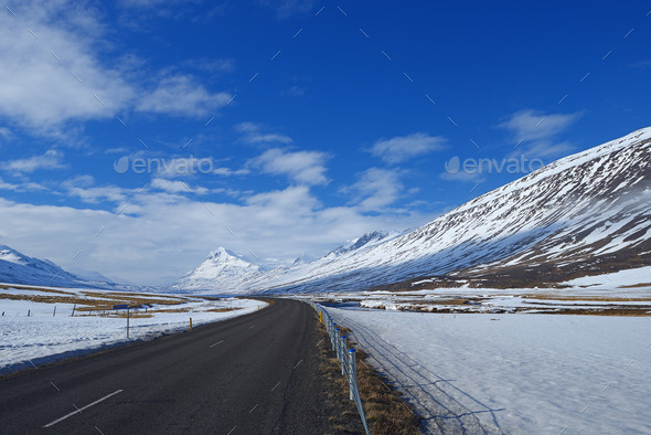 blue, cloud, cold, cover, fog, frozen, highway, iceland, lane, mountain, north, pave, peak, polar, road, sky, snow, top, transportation, way, winter