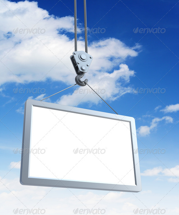 3d, advertisement, announcement, backgrounds, banner, billboard, blank, business, cable, copy, crane, empty, equipment, frame, hook, illustration, lift, machinery, metal, nobody, outdoors, placard, poster, promotion, render, rendering, rope, showing, sign, silhouette, space, steel, template, tools, white