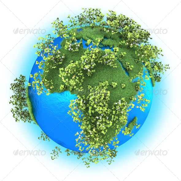 africa, bio, biosphere, blue, continent, earth, eco, ecology, environment, flora, global, globe, grass, grassy, green, illustration, isolated on white, model, orbit, planet, sphere, white background