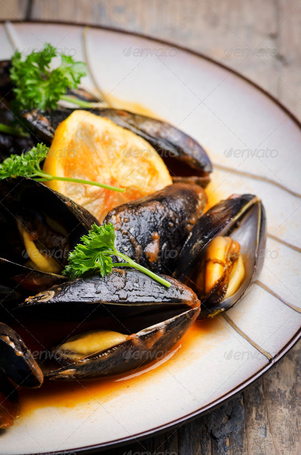 appetizer, background, black, bowl, citrus, clam, closeup, cooked, cuisine, diet, dinner, dish, eat, fish, flavor, food, fresh, garnish, gourmet, green, healthy, herbs, ingredient, kitchen, lemon, lunch, meal, mediterranean, menu, mollusk, Mussels, parsley, plate, recipe, red, restaurant, rustic, sauce, sea, seafood, season, shell, shellfish, steamed, table, tomato, traditional, vintage, wine, wooden