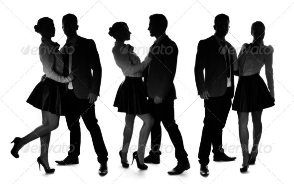 Three silhouettes of a romantic loving couple (Misc) Photo Download