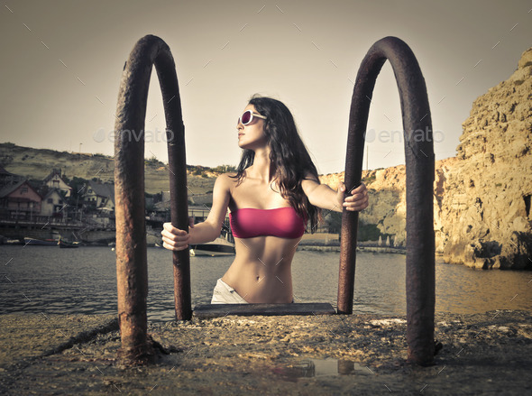 active, bikini, body, brunette, caucasian, fashion, house, lake, landscaped, nature, old, pier, pool, portrait, profile, river, sea, sunglasses, swim, trampoline, vacation, village, water, wet, wharf, woman, young, youth