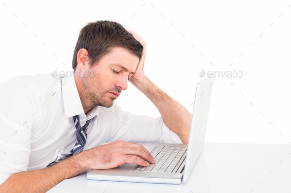 30s, attentively, business, businessman, career, caucasian, computer, concentrated, concentrating, corporate, cut out, desk, focused, isolated, laptop, male, man, Mid Adult, notebook, professional, serious, sitting, technology, thinking, thoughtful, well dressed, white background, wireless