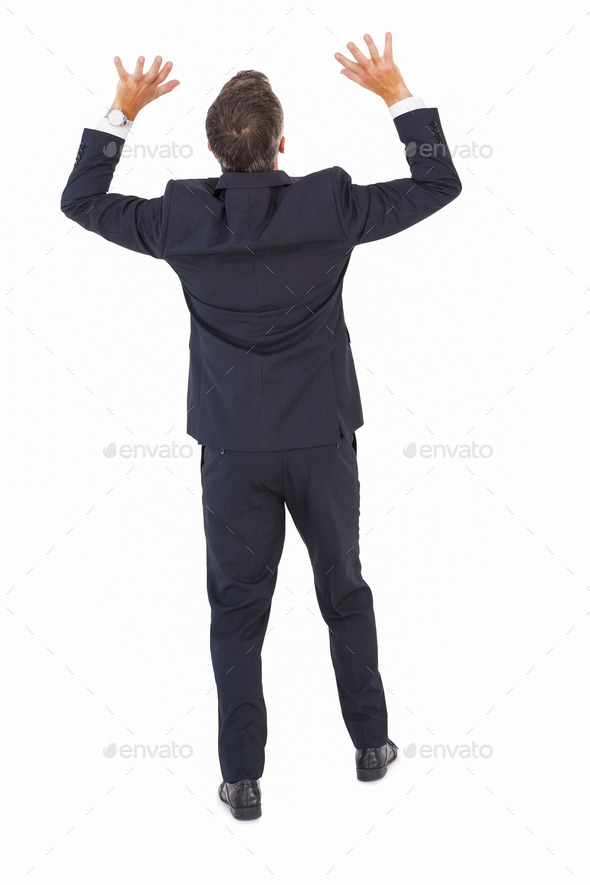 Rear view of a businessman in suit pushing on white background (Misc) Photo Download